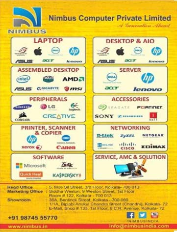 Nimbus Computer based in Kolkata, West Bengal is a single window solution provider for all your IT requirement, i.e. Server, Laptop, Desktop, Networking, Peripherals, Accessories & Consumables. We stand by our professed objective: “Sales is our target, Service is our only weapon to achieve our target.” Nimbus is retailer and distributors of HP, Acer, Lenovo, Dell, Asus, Philips, ROG and many more IT brands…
